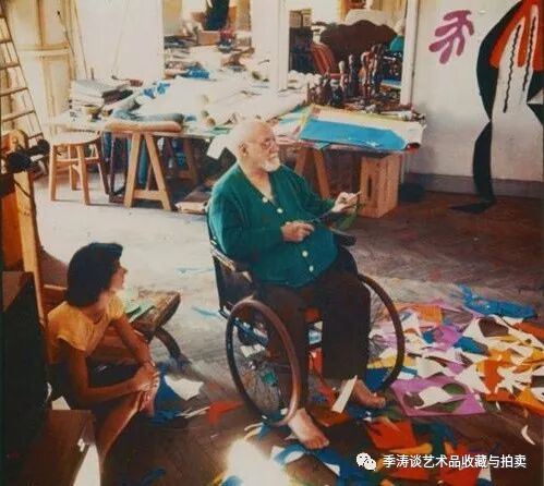 1941年, 72岁的马蒂斯患了肠道疾病,经历了两次痛苦的手术,从此病魔就再也没有离开过他。身体的虚弱使他再也不能站在画布前作画,于是他又开始了一种新的艺术创作——剪纸。为了剪出色彩鲜丽的作品,他亲自动手,染出自己需要的彩纸,靠在床上不停地剪。这位老人仿佛在以孩子的娱乐消磨最后的时光。虽然他生命的最后两年几乎都是在病床上度过的,但他的创造力却从来没有停息过。