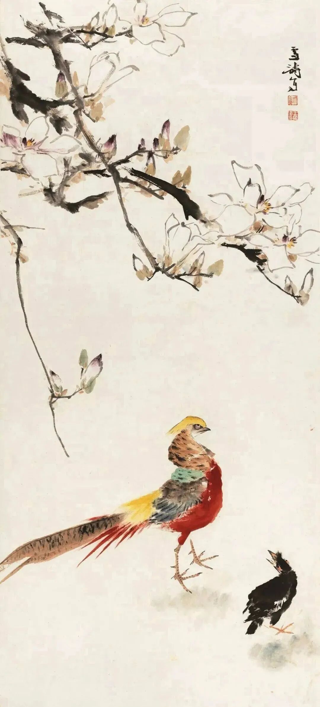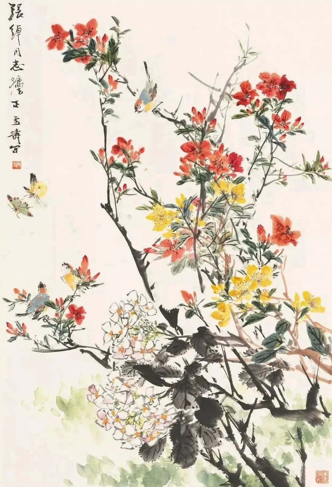 王雪涛于花鸟画用功最勤,其小写意花鸟画在当代画坛独树一帜,充分展示了“万卉同春,百鸟争荣”的景象,为当代花鸟画开创一个新的领域。