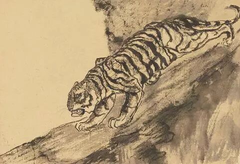 猛虎下山 李铁夫 纸本水墨 27.2cm×39.7cm 1930—1940年代 广州美术学院美术馆藏