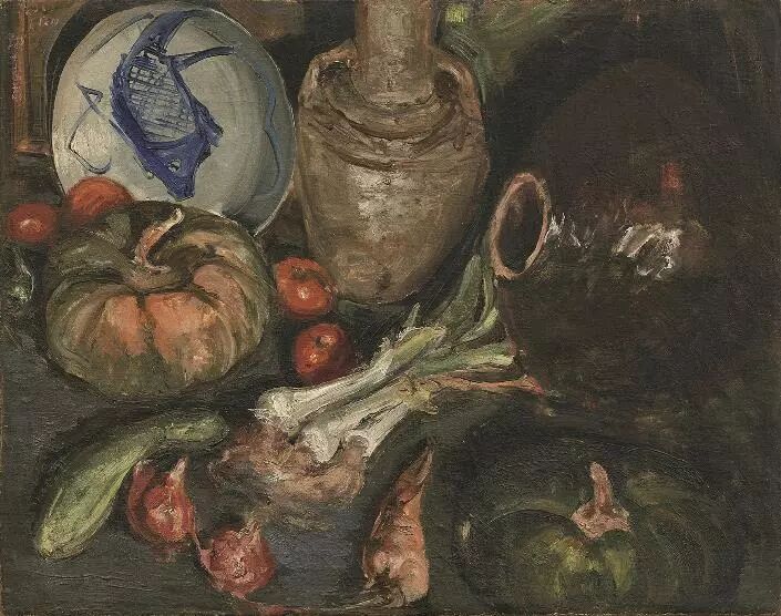 瓜蔬与坛盘 李铁夫 布面油彩 71.5cm×90.5cm 1938年 广州美术学院美术馆藏