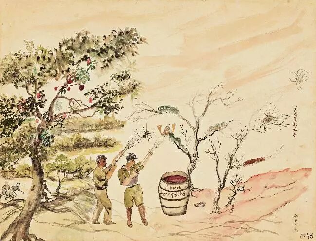 今日时局 李铁夫 纸本水彩、铅笔 58.5cm×76.4cm 1951年 广州美术学院美术馆藏