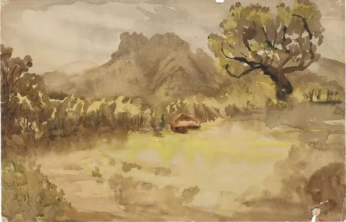 狮子山 李铁夫 纸本水彩 38.4cm×58.7cm 1933年 广州美术学院美术馆藏