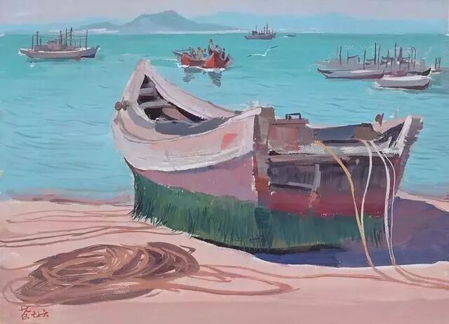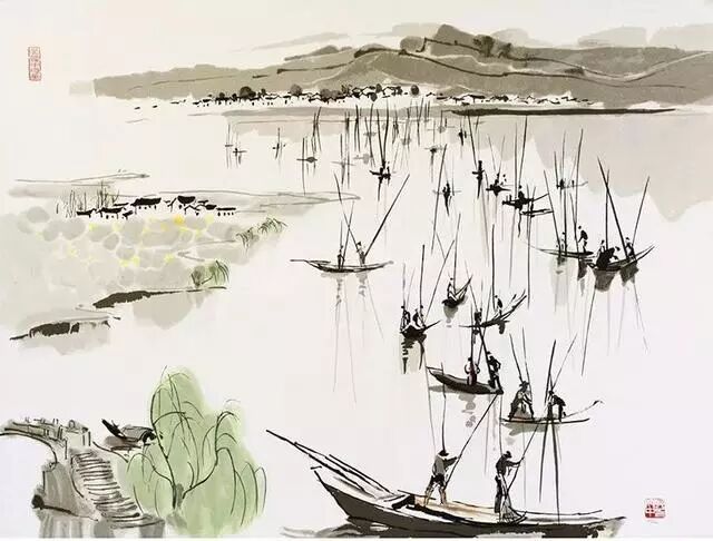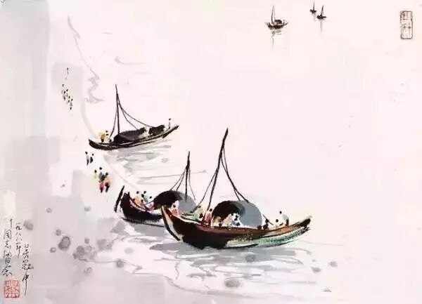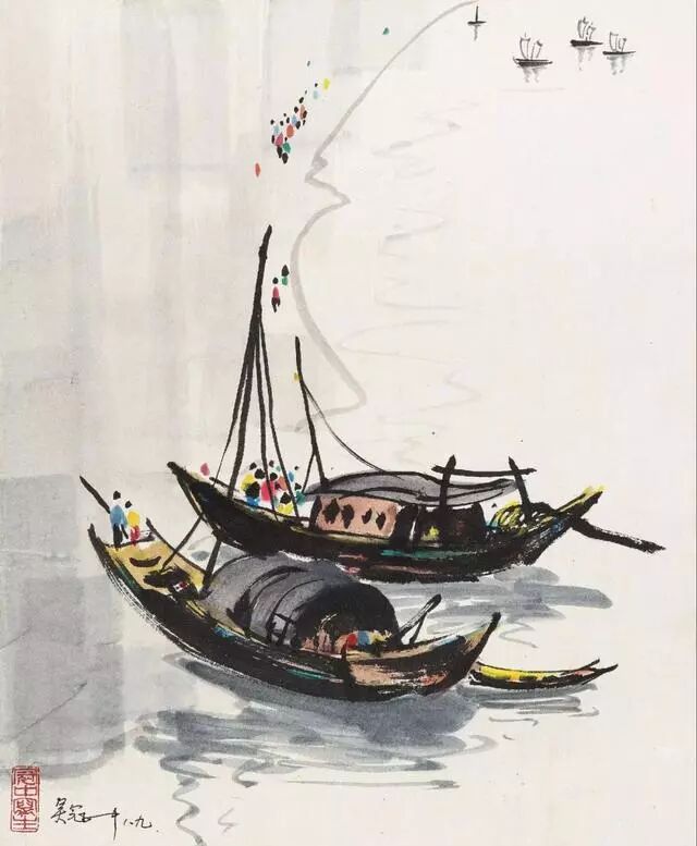 “我永远记得姑爹家那只小渔船,它永远离不开姑爹,它也像姑爹对我一样的亲切……小小渔船永远地在我脑海里留下了难忘的形象,亲切的形象,我特别喜爱鲁迅故乡的乌篷船,我的绘画作品中经常出现水乡小船,正渊源于姑爹家的渔船吧!”——吴冠中