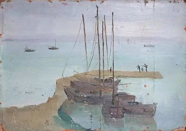 水上那飘浮的船体被荡漾的水波摇晃着,形象瞬息多变,兼备具象与抽象之美感。