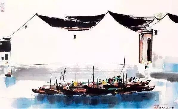 这一切落入画家的眼中,便成了足以入画的视觉之美,一弯小船承载了画家太多的童年记忆。可以说,吴冠中的江南梦,便是从这一条小小的船牵萦开去的。