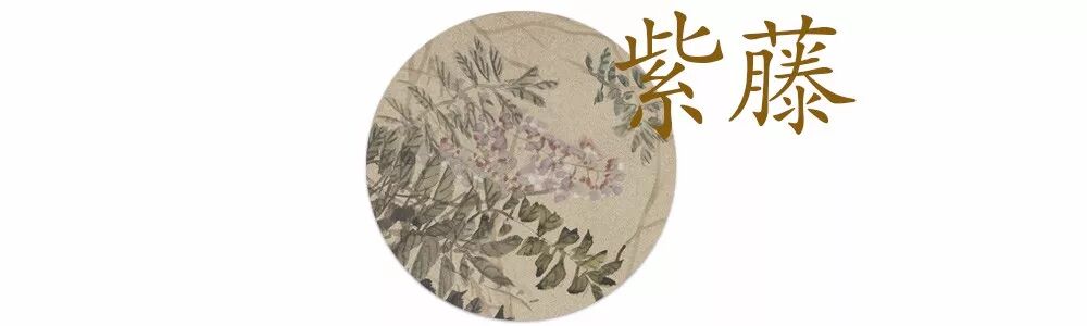 紫藤,别名藤萝、朱藤、黄环,是长寿树种,民间极喜种植,作庭园棚架植物,春季开花,花紫色或深紫色,串串花序悬挂于绿叶藤蔓之间,瘦长的荚果迎风摇曳,十分美丽。成年的植株茎蔓蜿蜒屈曲,攀绕枯木,有枯木逢生之意。自古以来中国文人皆爱以其为题材咏诗作画。紫藤和金鱼画在一起,就是“紫绶金章”,比喻高官厚禄。