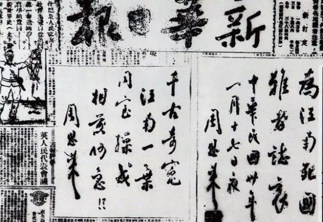 针对这一事变,周恩来义愤填膺,写下:“千古奇冤,江南一叶,同室操戈,相煎何急?”字里行间,饱满愤怒与力量。题字作品登报如下: