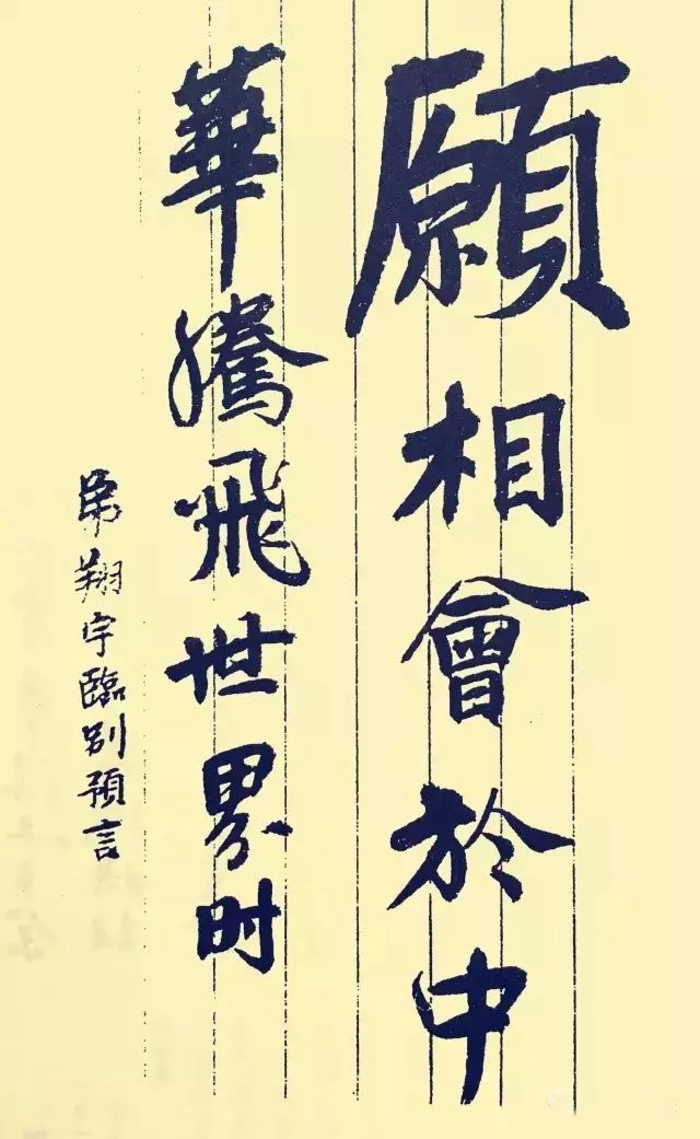 一个大大的愿字,加上一句话中的大小、行楷区别错落,跌宕起伏,从中似乎能够看出他的人生志向,以及对书法的审美追求。这其中,能够看到二王的痕迹,但魏碑的影响更大。