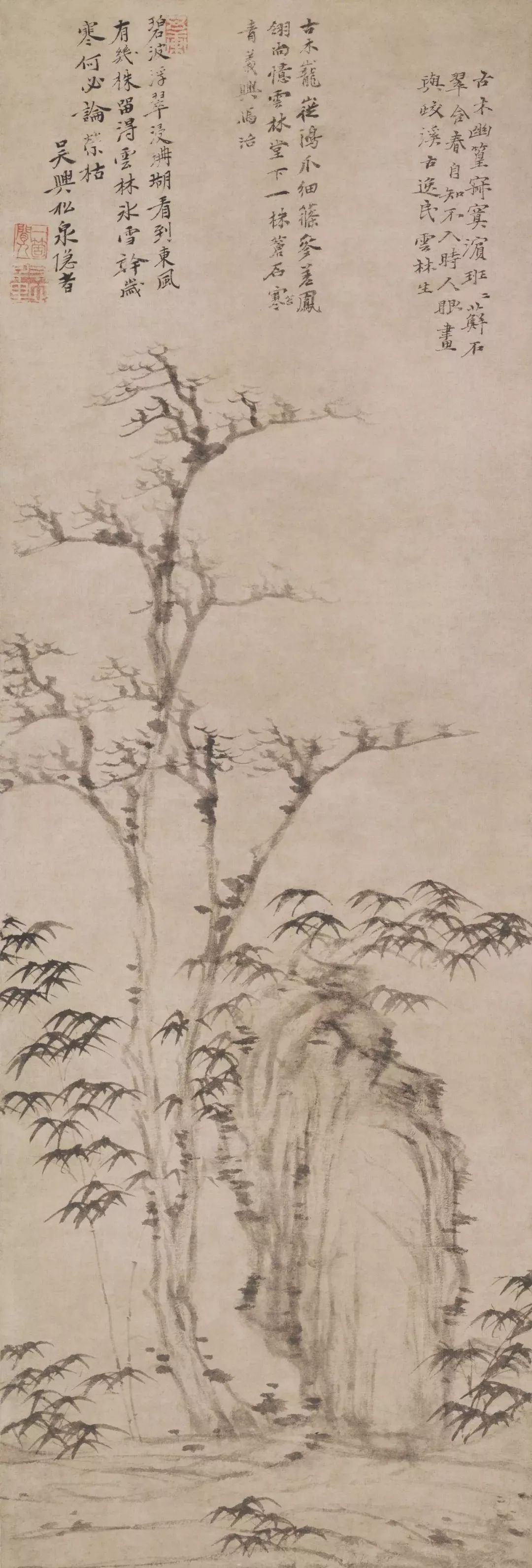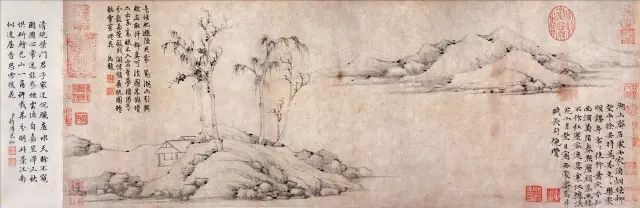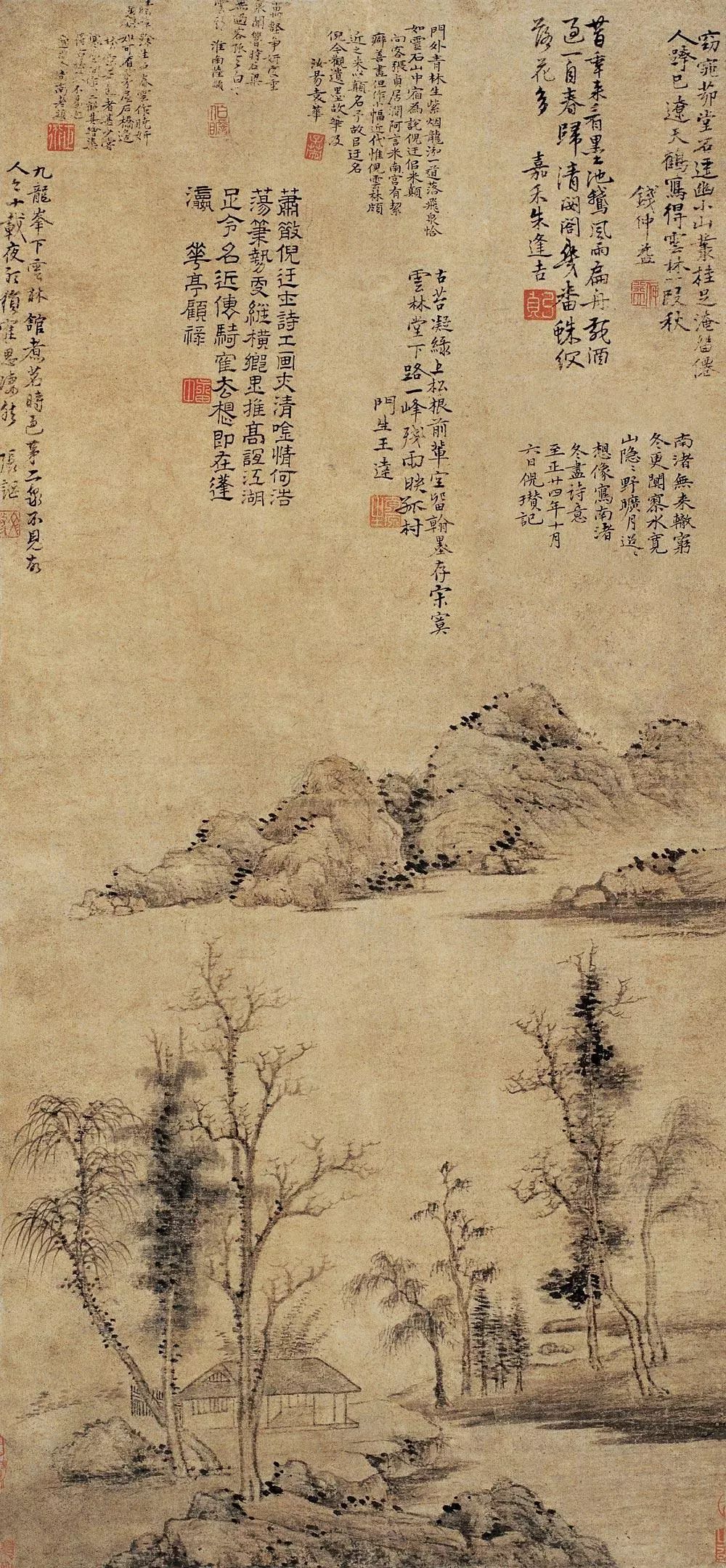 倪瓒 《水竹居图》 53.6 x 27.7cm 国家博物馆藏