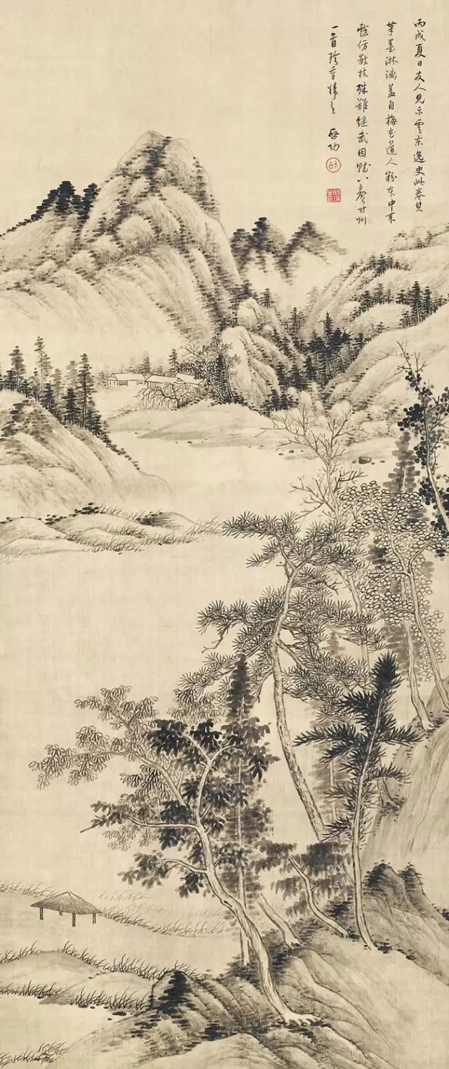 拟古仿古是启功先生绘画创作的一个重要内容。在启功存世的山水画中有许多这类作品,如“拟元人笔意”,“拟元人小景”,“拟黄鹤山樵笔意”,“仿石涛”,“仿蓝瑛”,“元白法古山水册”等等。