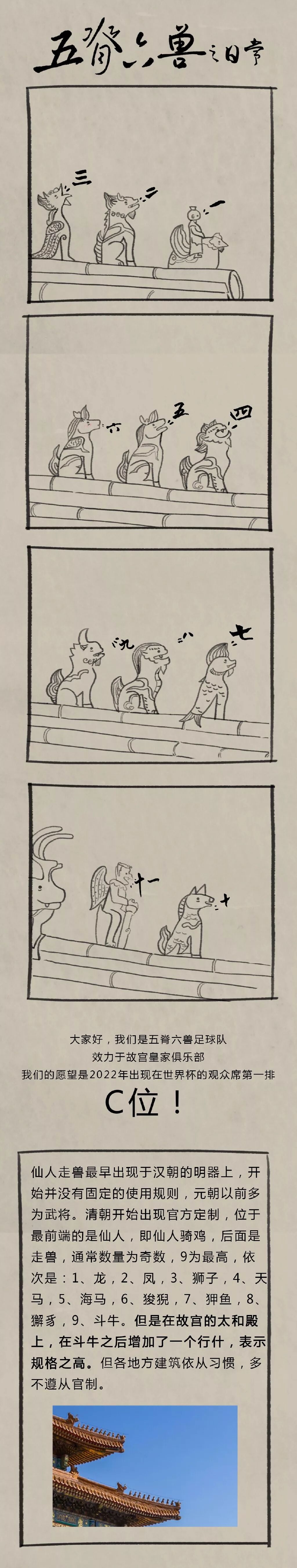垂脊上一排蹲兽(又叫跑兽)