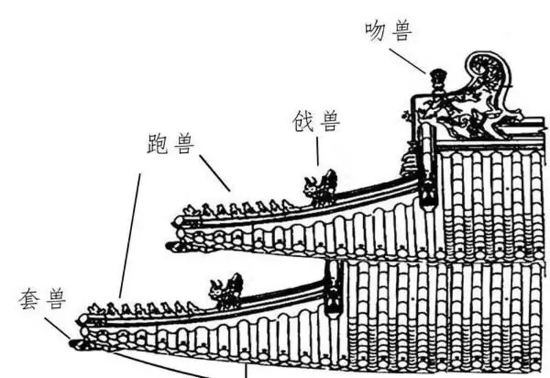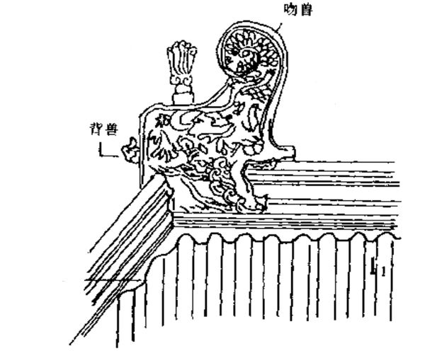正脊端头的吻兽、鸱吻背面的背兽