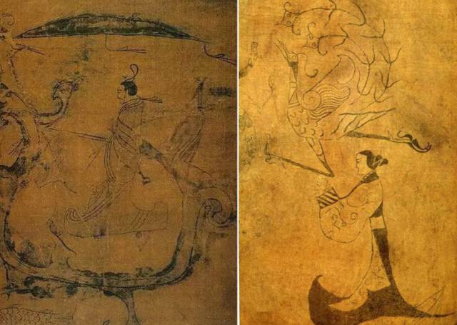 左《人物龙凤帛画》;右《人物御龙帛画》