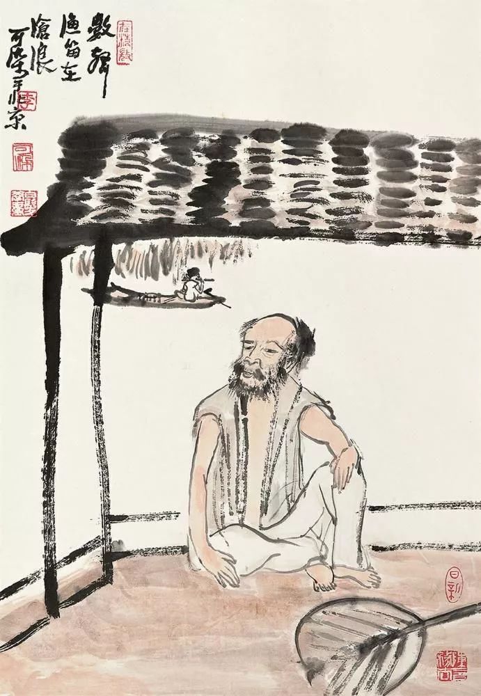 齐白石将晚年收弟子视为人生一大快事,对可染十分推重。他曾画《五蟹图》送给可染,上面题句:“昔司马相如文章横行天下,今可染弟书画可以横行也。”可染画一幅写意人物《瓜架老人图》,画的是一位老人在瓜架下乘凉打盹,整幅画超脱秀逸,卓尔不群。齐师看后,连连称赞,题句曰:“可染弟画此幅,作为青藤图可矣。若使青藤老人自为之,恐无此超逸也。”还在《耙草歇牛图》上题:“心思手作,不愧乾嘉间以后继起高手,八十七岁白石丁亥。” 李可染对齐师有深厚的感情,直到晚年仍念叨着齐师。他多次提及:“我在齐白石老师家学画10年,主要学他的创作态度和笔墨功夫。”