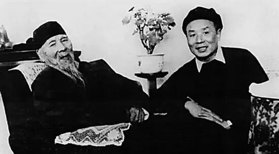 1953年齐白石与李可染在一起