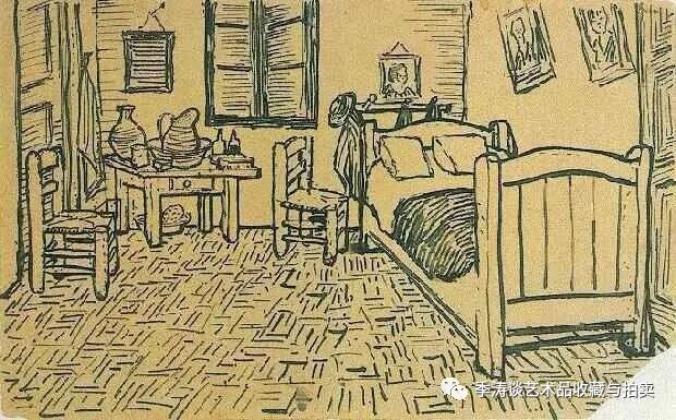梵高给高更信中绘制的《阿尔勒的卧室》草图