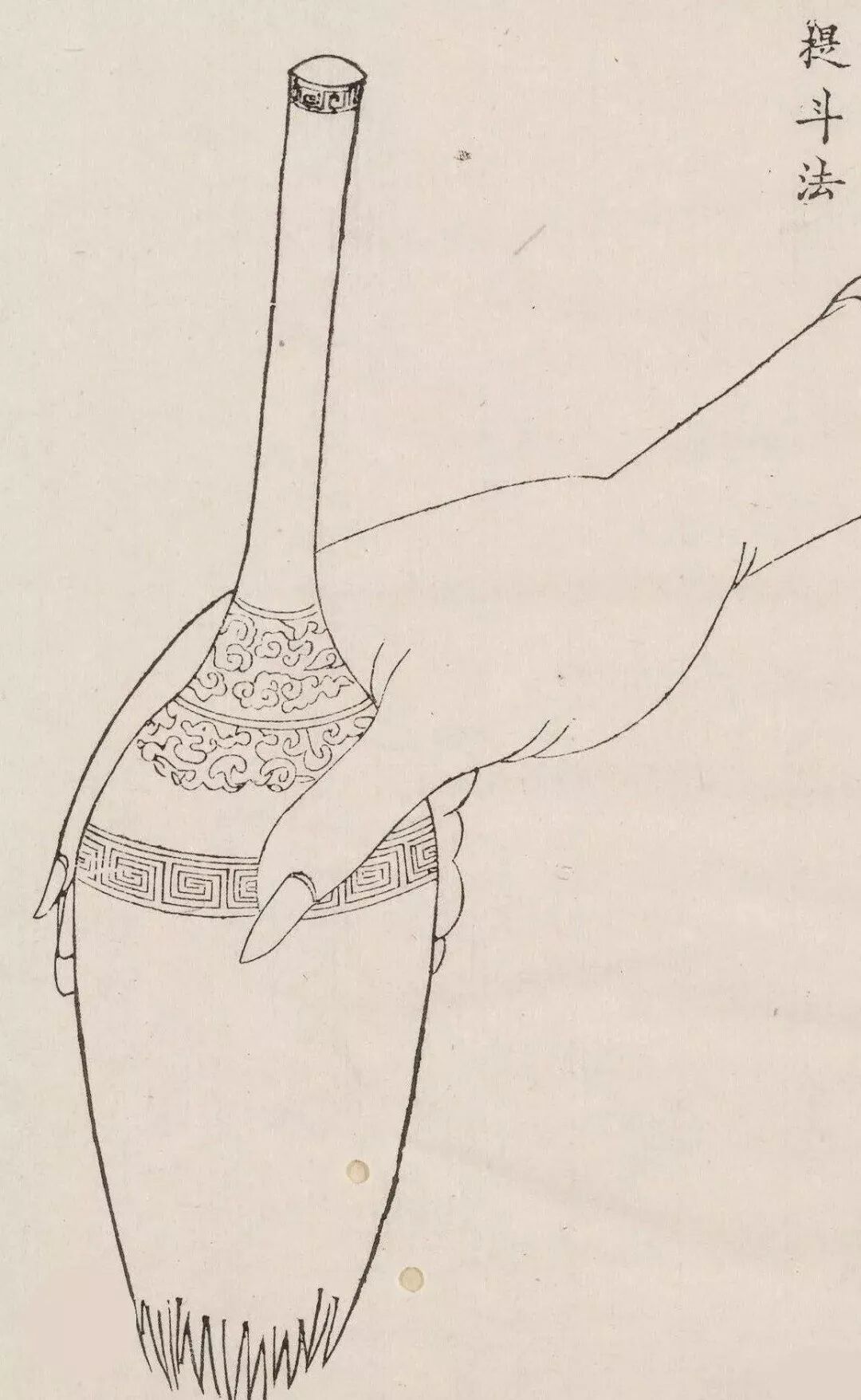 苏轼《论书》说“执笔无定法,要使虚而宽”。这句话道出了执笔的真谛。执笔是没有固定方法的,二指、三指、五指都可以。现代人都用五指,其实五指执笔明清才有。二指是单钩,古称“单苞”。大拇指与食指执笔,中指、无名指与小指相互抵拒,兼助食指而不拈笔杆。