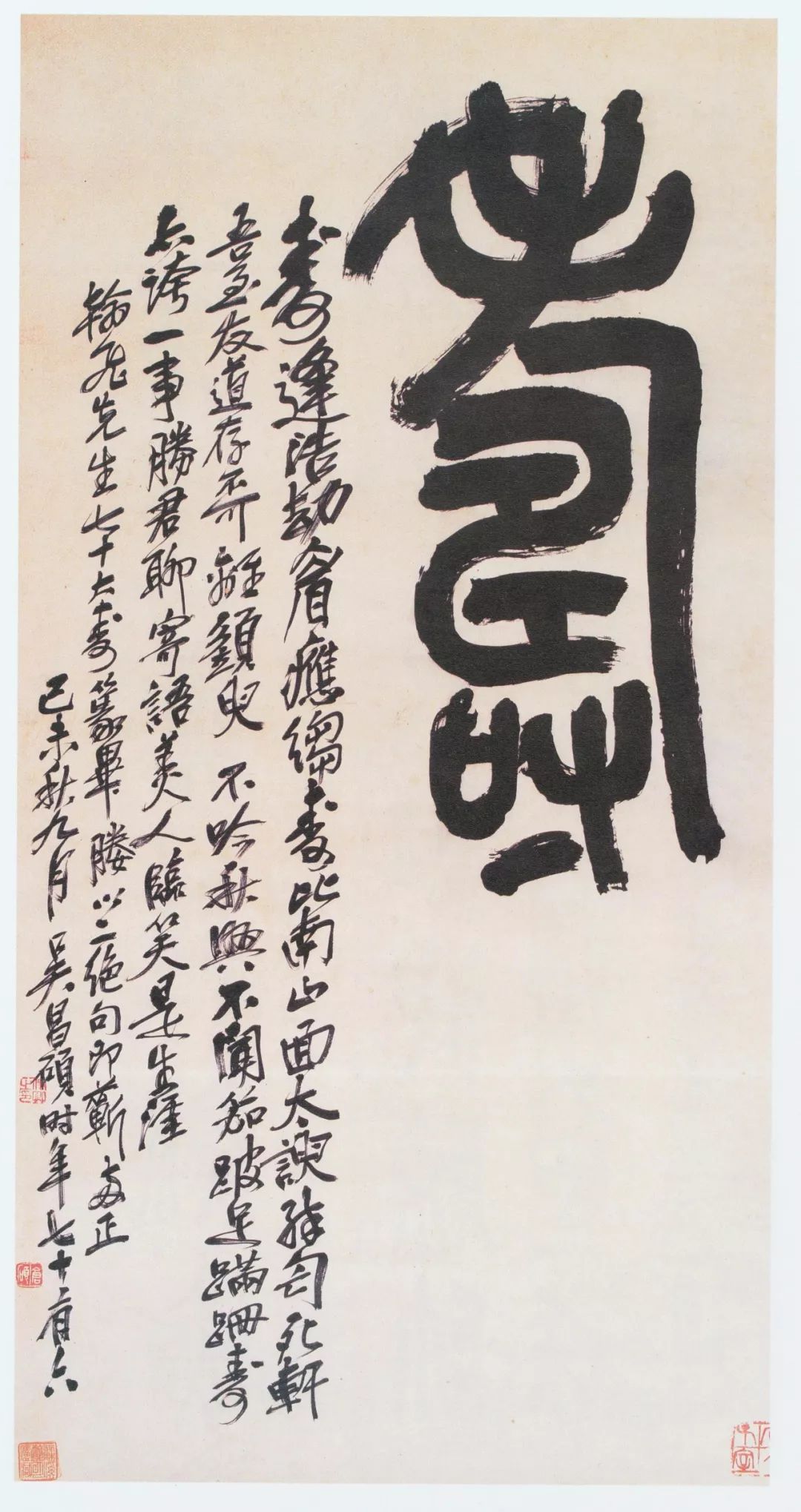 吴昌硕(1844-1927),浙江安吉人,初名俊、俊卿,初字香补,后更字昌硕。亦署仓硕、苍石,号缶庐、老缶、老苍、苦铁、大聋、破荷亭长、五湖印丐等。