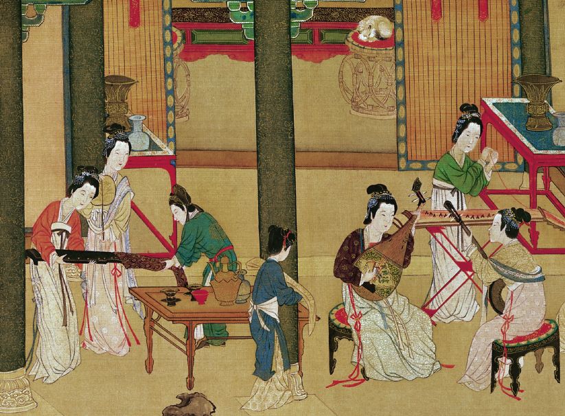 (明) 仇英 汉宫春晓图 (局部) 绢本设色