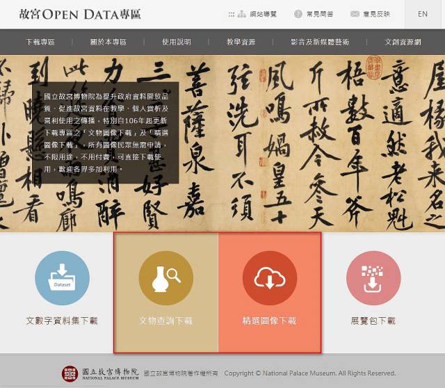 就在上个月,台北故宫博物院在官网宣布,故宫Open Data专区「文物查询下载」及「精选图像下载」中的中、低阶图像,无需申请,不限用途,不需付费,可直接下载。