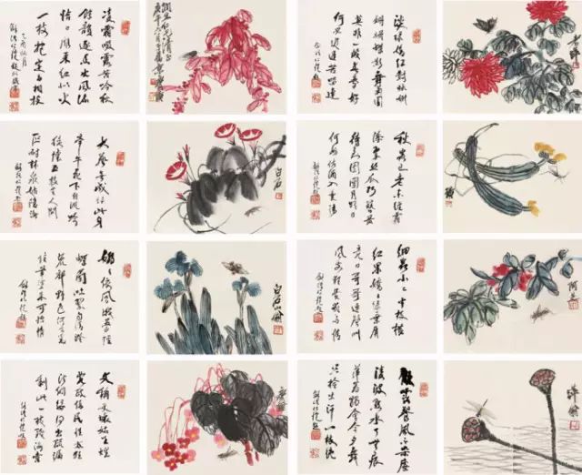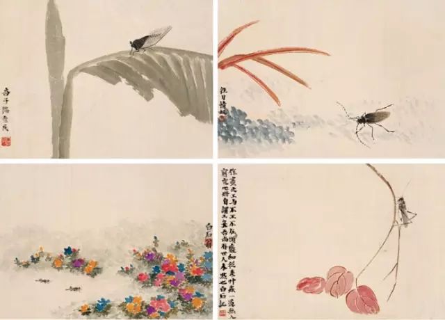 齐白石一生画的草虫品种非常丰富,多达数十种。不仅有蜻蜓、蝴蝶、蝉、蜜蜂、蝈蝈、蚂蚱、螳螂、蟋蟀、天牛、蛾、蝼蛄、蝗虫、灶马、蜘蛛、水蝽,甚至还有蟑螂和苍蝇。
