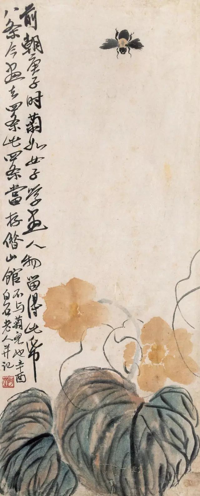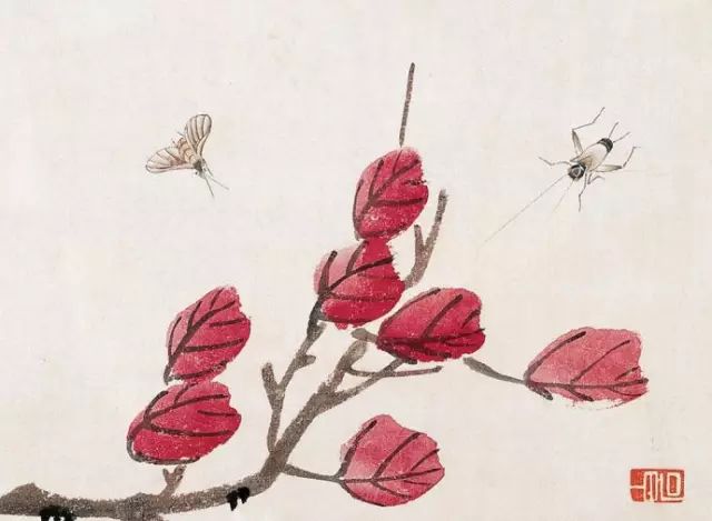 现存齐白石最早的草虫作品,为师父胡沁园夫人所绘《花卉蟋蟀图》辽宁省博物馆藏
