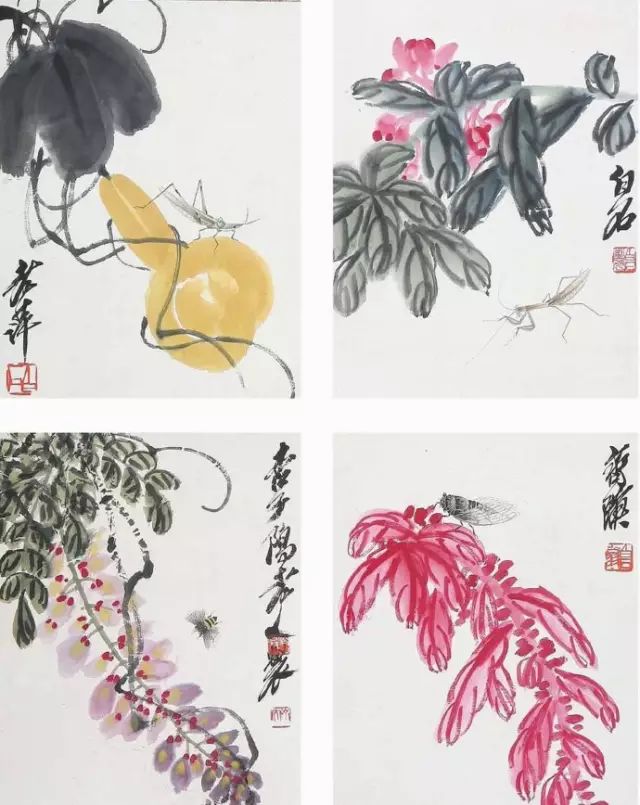 齐白石曾说,画虫“既要工,又要写,最难把握”,又说:“凡画虫,工而不似乃荒谬匠家之作,不工而似,名手作也。”齐白石画虫绝非凭空想象,而是来自于他自己亲眼所见。