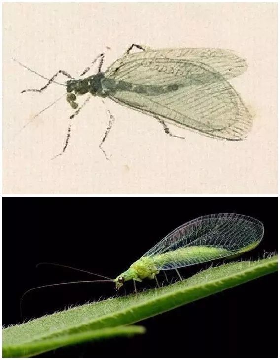 齐白石笔下的草蜻蛉与真实的草蜻蛉对比