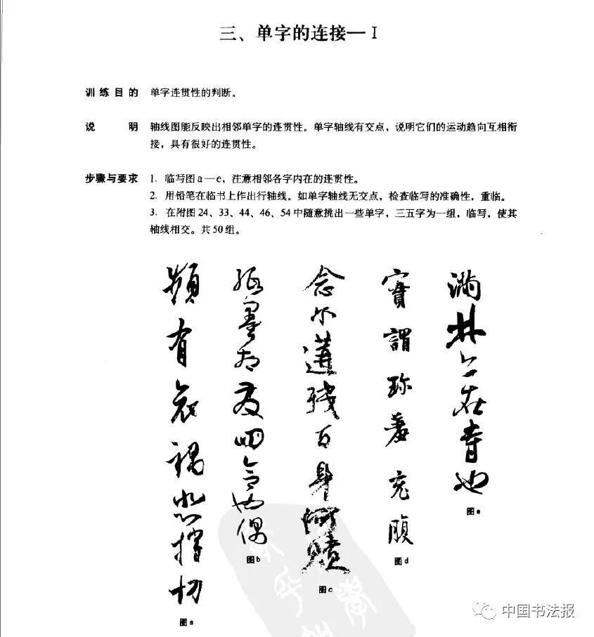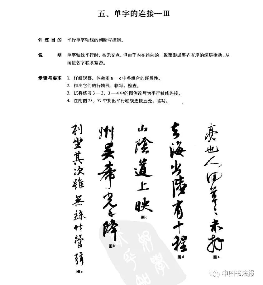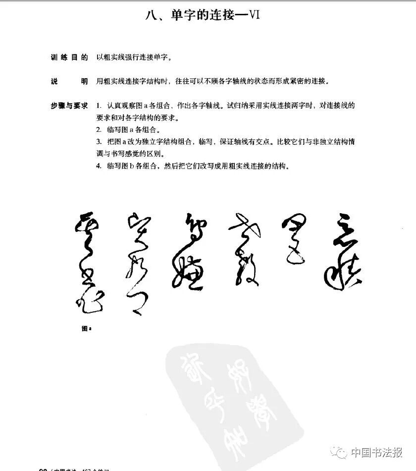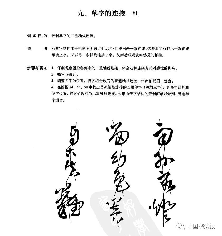 滑动图片,看《中国书法:167个练习》中所列举得九种单字衔接的方式