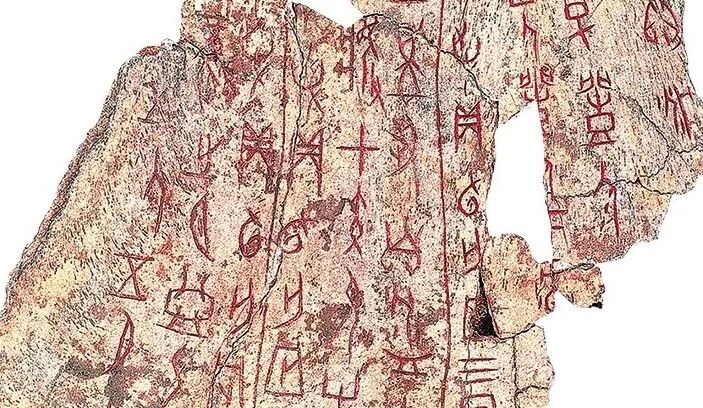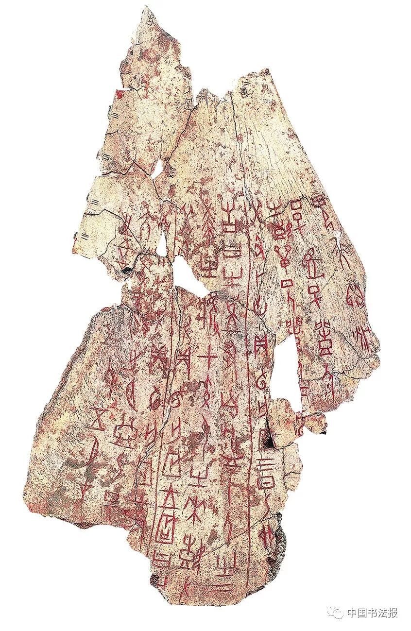 国博藏武丁时期甲骨文(局部) 牛骨涂朱