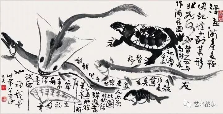 在近现代画坛中,中国出现了四位大写意画大师:吴昌硕、齐白石、潘天寿、李苦禅。大写意不是一个画种,而是传统中国画的一种技法。