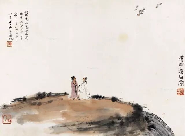 傅抱石 1960年作 江干清话图 镜心 设色纸本