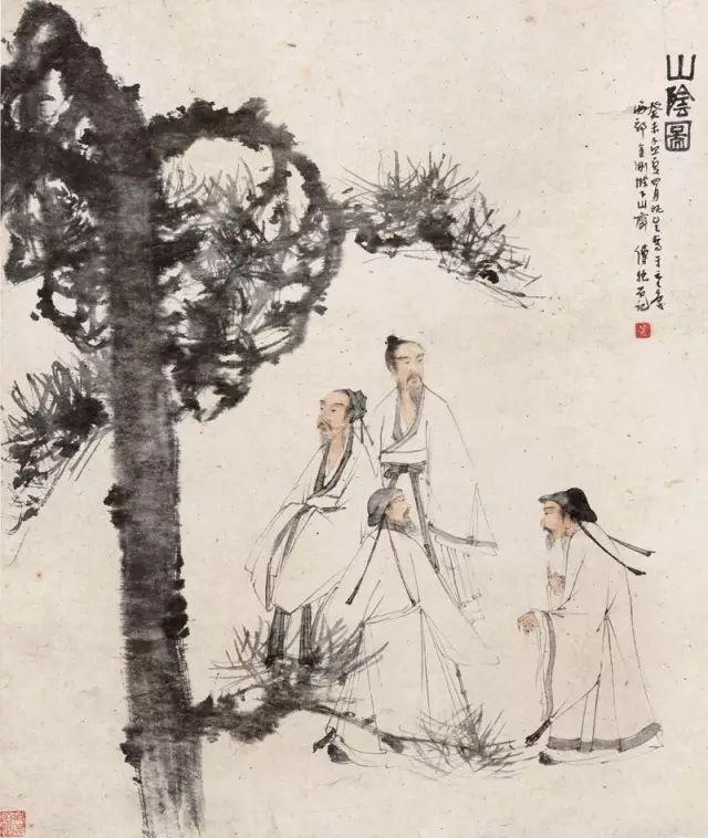 傅抱石 1943年作 松下高士 镜心 设色纸本