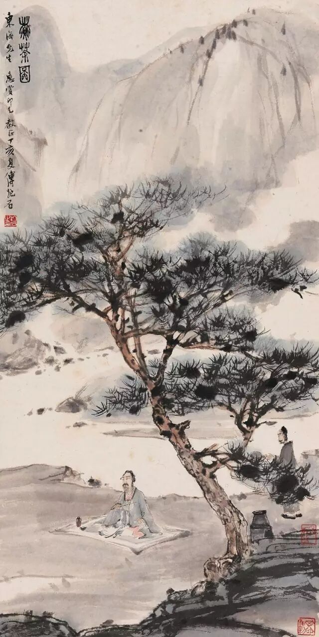 傅抱石 1947年作 煮茶图 立轴 设色纸本