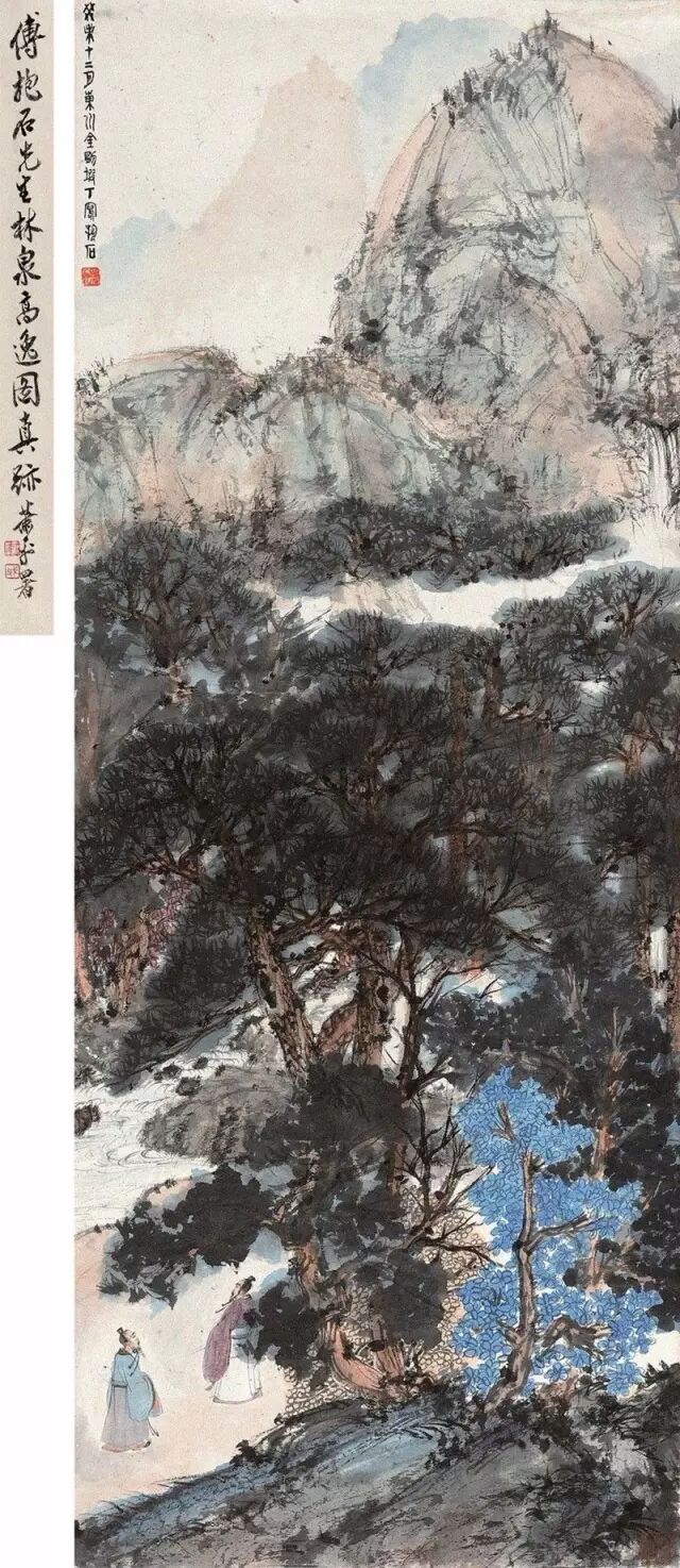 傅抱石 1941年作 万松山馆图 立轴 设色纸本