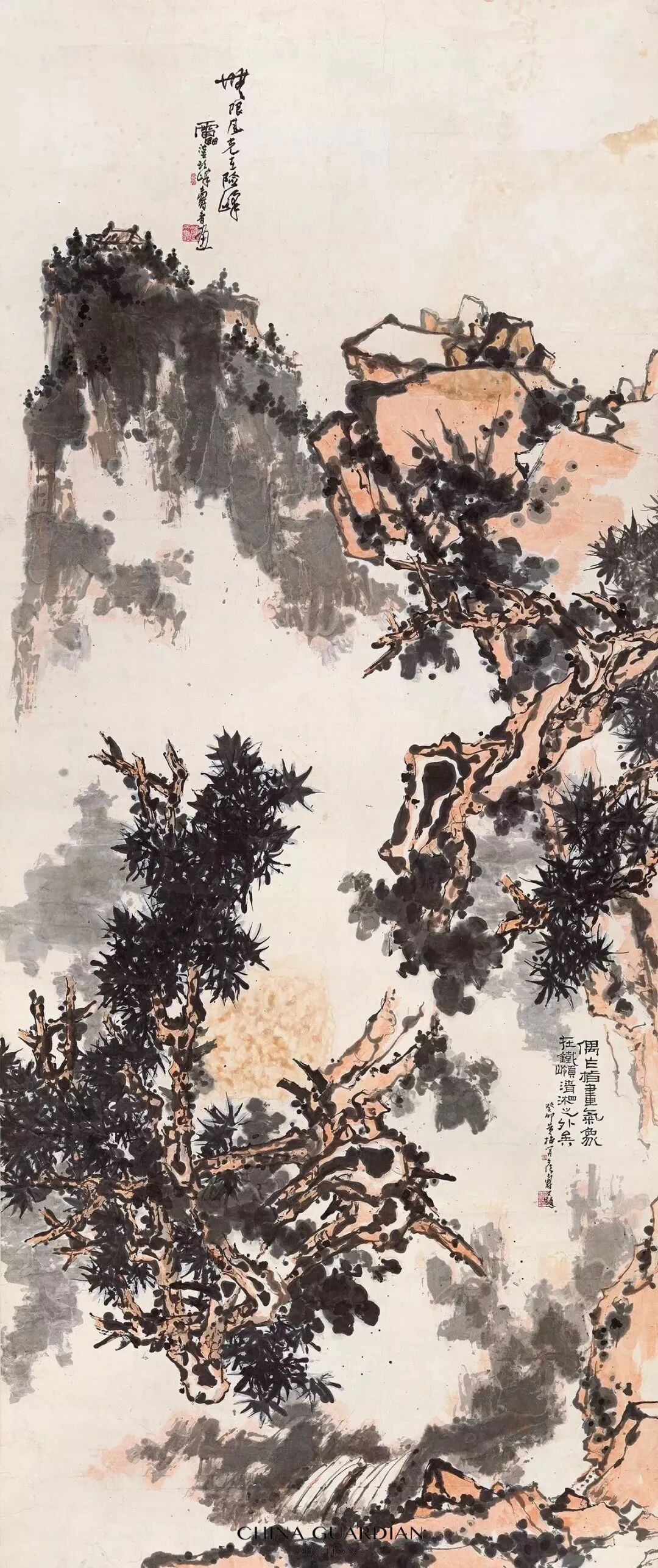 2018年11月20日,潘天寿最大尺寸、最具传奇色彩的指墨画《无限风光》,在中国嘉德拍卖“大观——中国书画珍品之夜”中以2.5亿元落槌,加佣金最终成交价为2.875亿元,刷新潘天寿作品拍卖纪录!