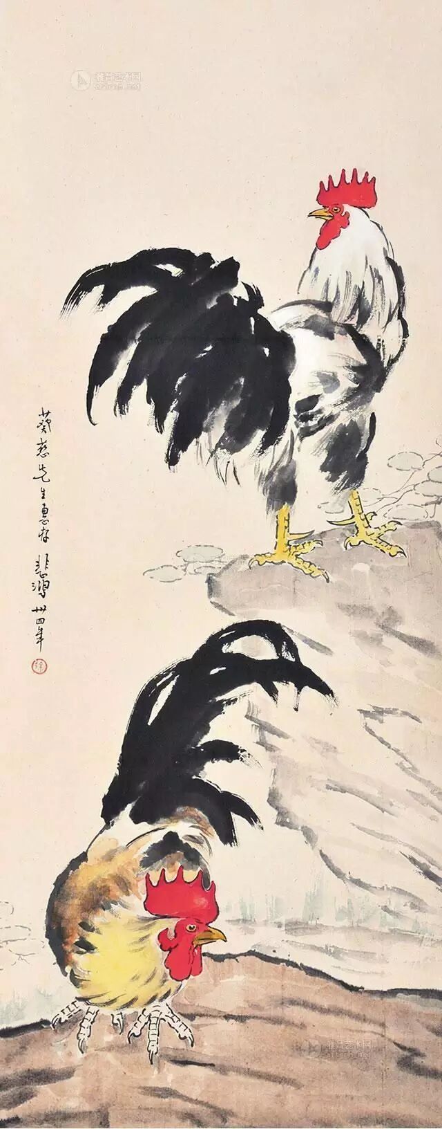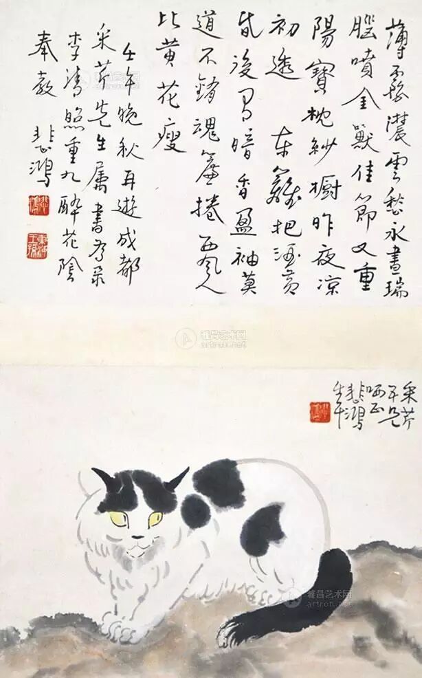 徐悲鸿(1895-1953年),现代画家、美术教育家。汉族,江苏宜兴人。曾留学法国学西画,归国后长期从事美术教育、北平大学艺术学院和北平艺专。擅长人物、走兽、花鸟,主张现实主义,于传统尤推崇任伯年,强调国画改革融入西画技法,作画主张光线、造型,讲求对象的解剖结构、骨骼的准确把握,并强调作品的思想内涵,对当时国画坛影响甚大。所作国画彩墨浑成,尤以奔马享名于世。更多書畫图文关注微信公众:Artcn或加QQ:515060013查看"國 藝"書畫空间