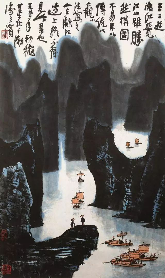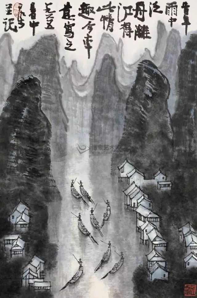 李可染1977年作《雨中漓江》纸本设色 71.2cm×47.8cm家属藏