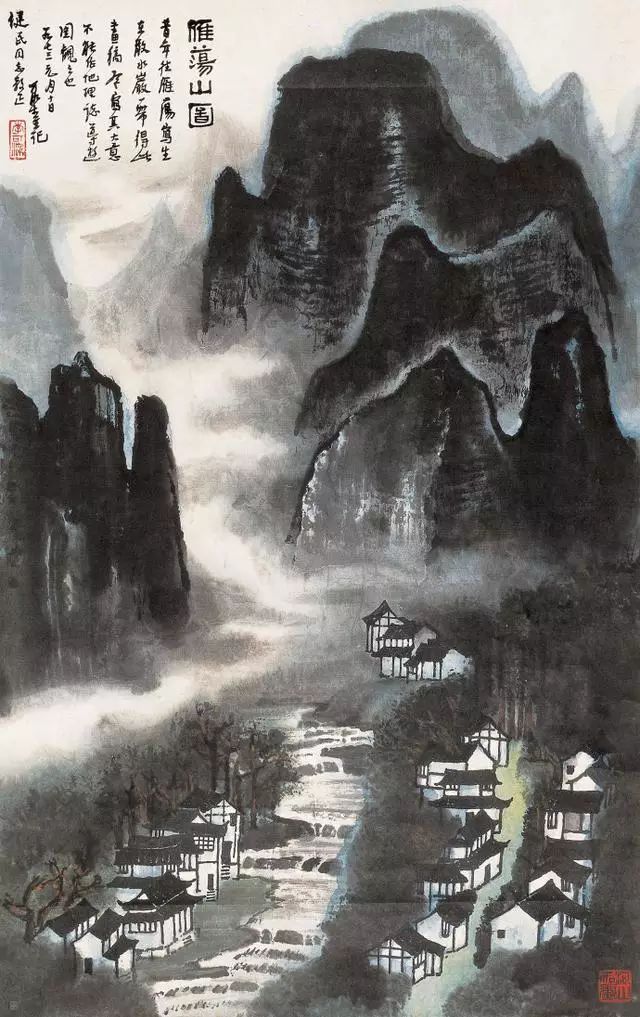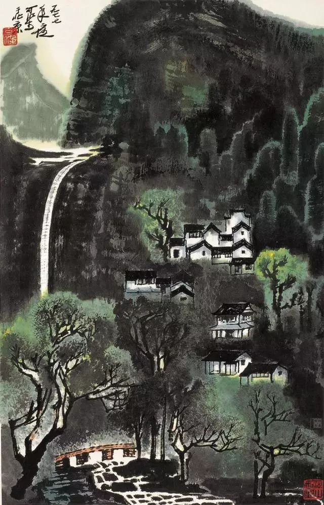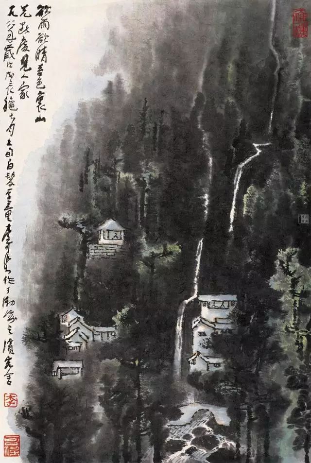 李可染1983年作《苍岩双瀑图》68cm×45.5cm