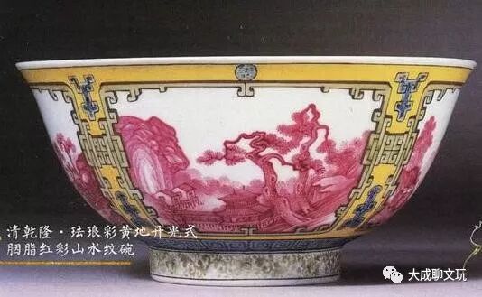但是,像马未都这样精通古玩收藏的收藏家也有失手的时候。而让他失手的就是这件乾隆珐琅彩黄地开光胭脂红彩山水纹碗!这只碗前前后后一共在古玩市场上出现过三次。