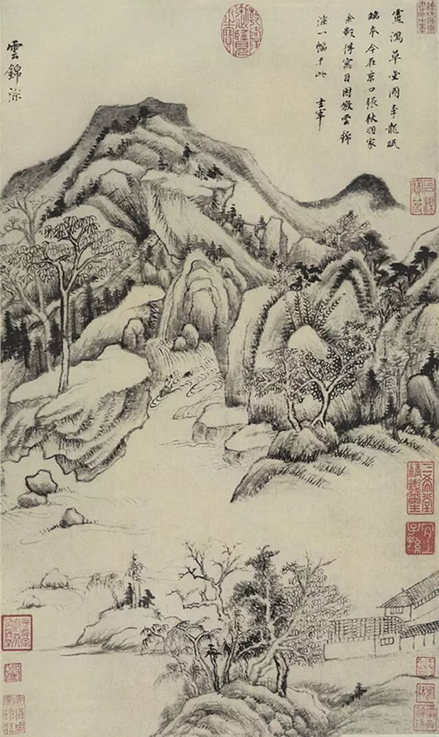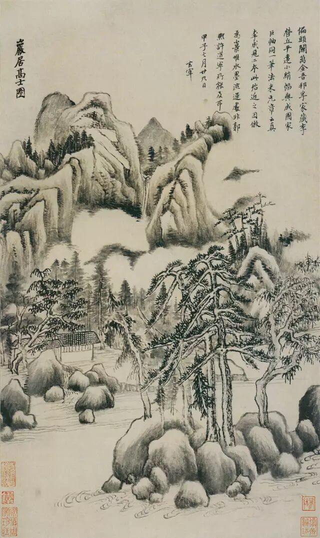 董其昌《岩居图》纸本,墨笔,纵:32.8、横:135.7厘米。无锡市博物馆藏。