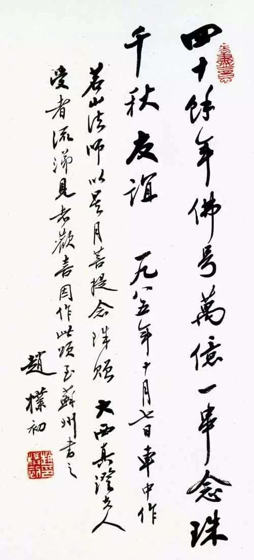 启功先生和赵朴初先生是近现代书坛最受人敬重的两位大师。一方面:两位大师均具有极高的综合文化修养和人格魅力;另一方面:两位大师一生酷爱书法,不辍临池,继承传统的同时,又有创新,最终形成自己的风格,深受人们喜爱。