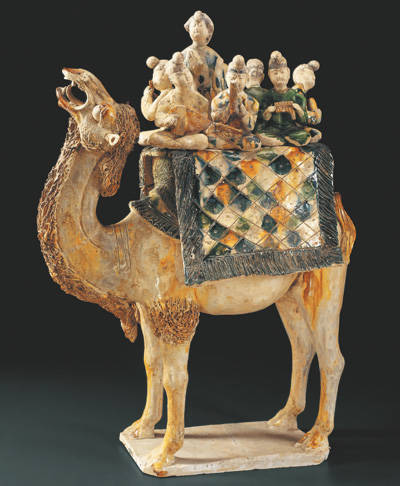 三彩骆驼载乐俑
