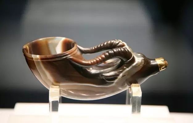 兽首玛瑙杯,唐代酒器,1970年在西安市南郊何家村出土,收藏于陕西历史博物馆。唐兽首玛瑙杯从选材、设计到工艺,都可称为唐代玉雕艺术的精品,是至今所见的唐代唯一一件俏色玉雕,是唐代玉器做工最精湛的一件,在中国是绝无仅有,它是海内外孤品,同时也是唐代中外文化交流的产物。