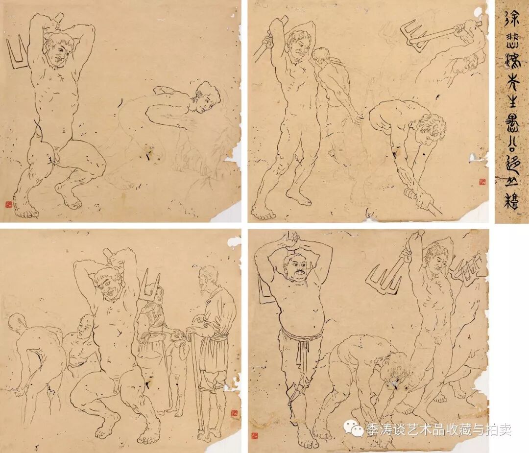 北京保利2015年春拍以43.7万元拍出的五件《愚公移山》画稿