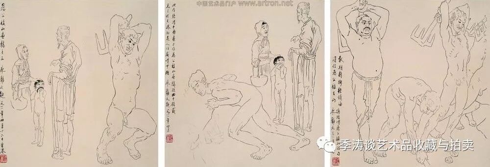 北京翰海2004年秋拍以19.8万元拍出的三件《愚公移山》画稿