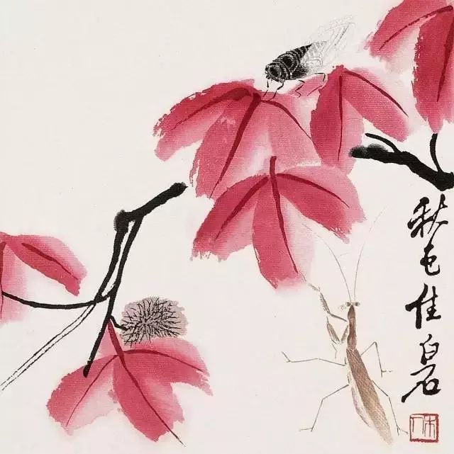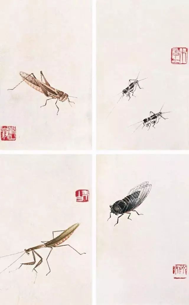 齐白石的绘画灵动而有趣,这得益于他对生活的观察入微,与作画时的实事求是。他从来不画自己没见过的东西,每一样都是真实的。比如虾身就是六节,蝉趴树枝是头朝上,都要讲究。