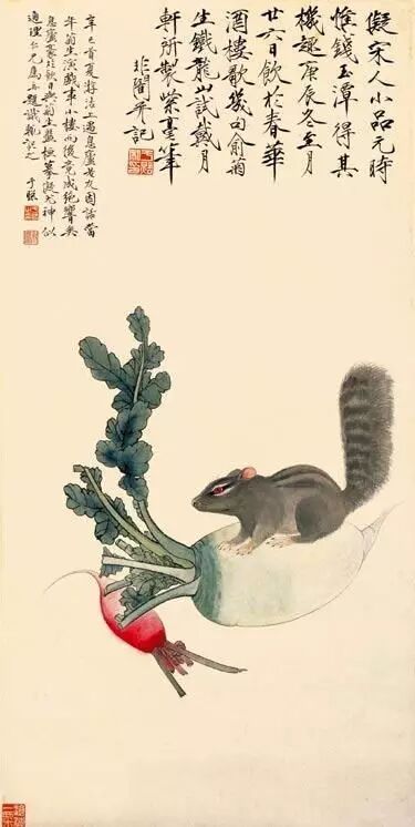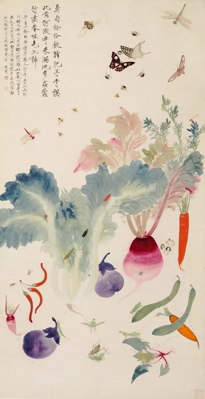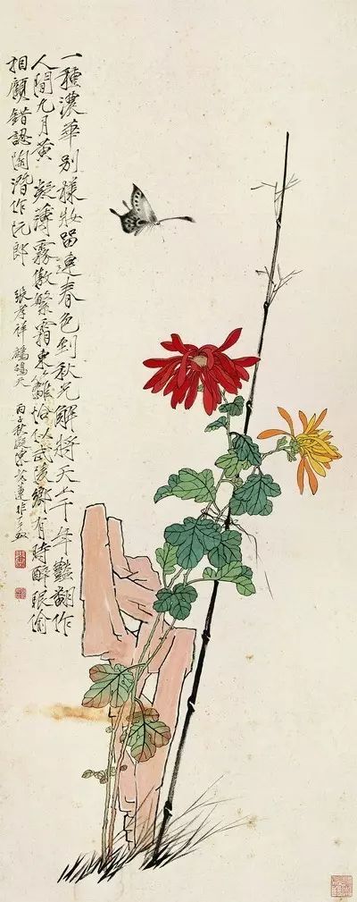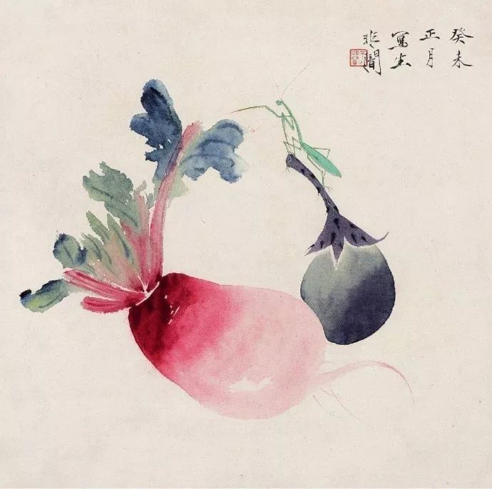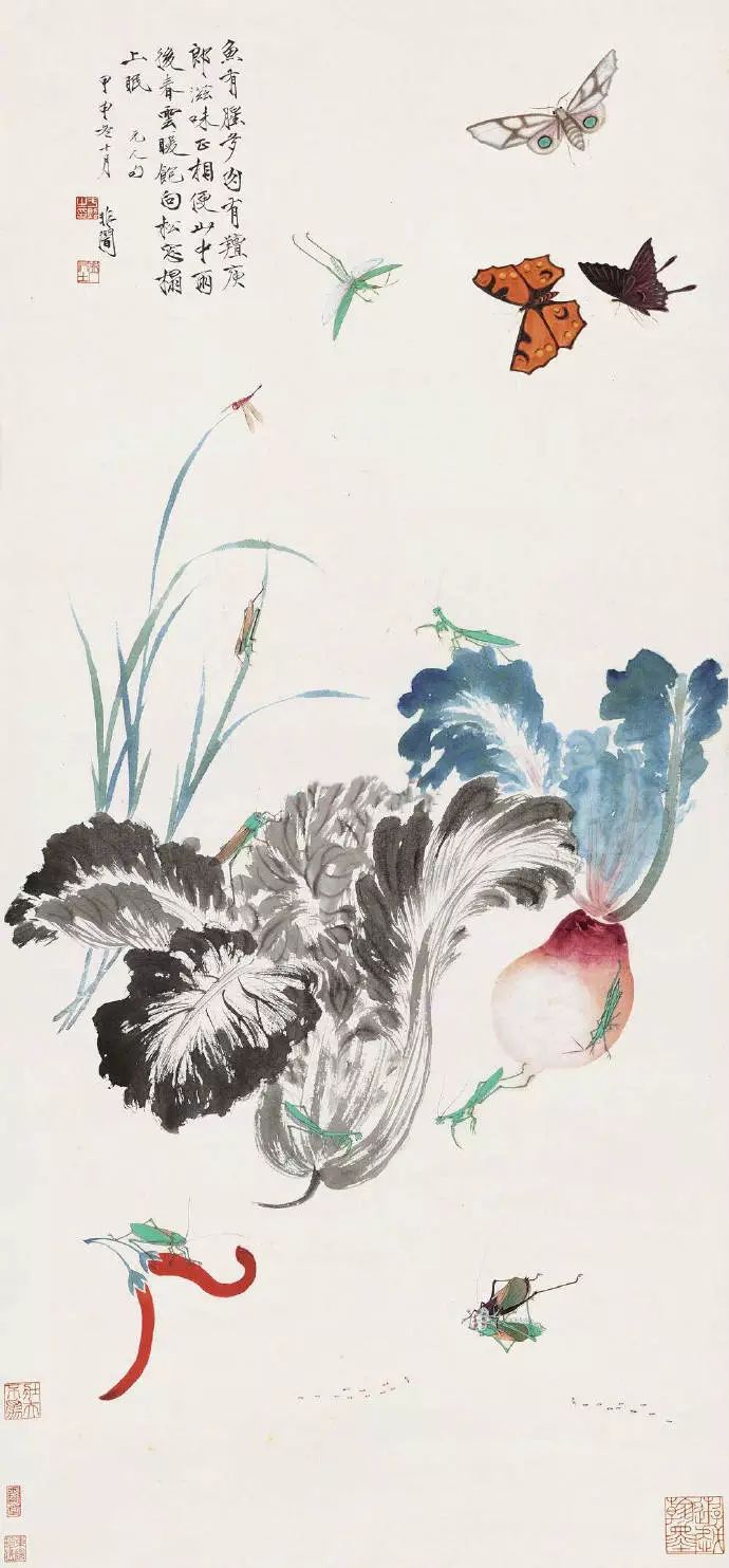 他还注重于师法自然,即便晚年名声日隆,仍时刻留意百卉虫鸟,以求精确。每逢公园牡丹盛开,或听闻某处菊花展览,一定要去仔细赏览,勾画底稿数幅留存。