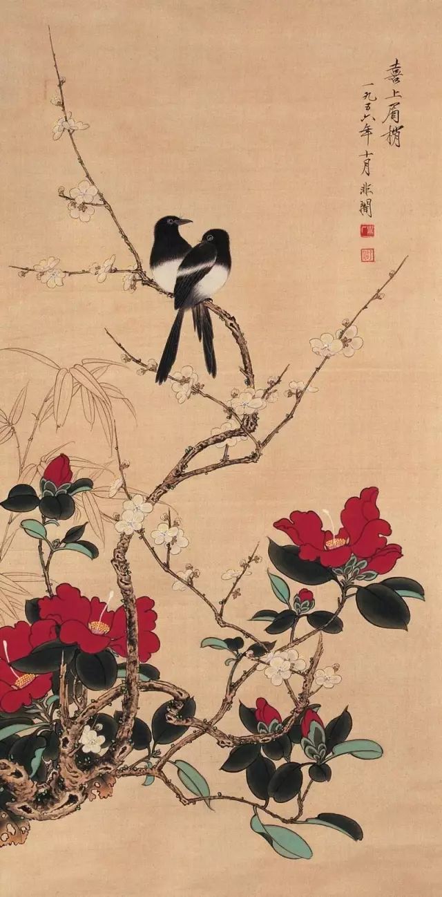 于非闇在生命的最后一年,挣扎疾病,题《喜鹊柳树图》跋云:“从五代两宋到陈老莲是我学习传统第一阶段,专学赵佶是第二阶段,自后就自己的栽花养鸟的一些知识从事写生,兼汲取民间画法,但文入画之经营位置亦未尝忽视。如此用功直到今天,深深体会到生活是创作的泉源,浓妆艳抹、淡妆素服以及一切表现技巧均以此出也。”