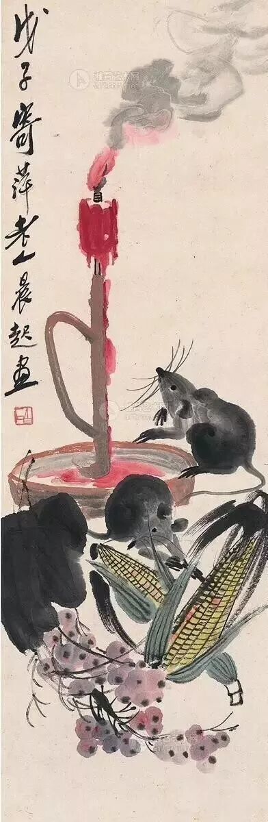 齐白石 1467 1948年作 烛台鼠戏图 立轴 设色纸本